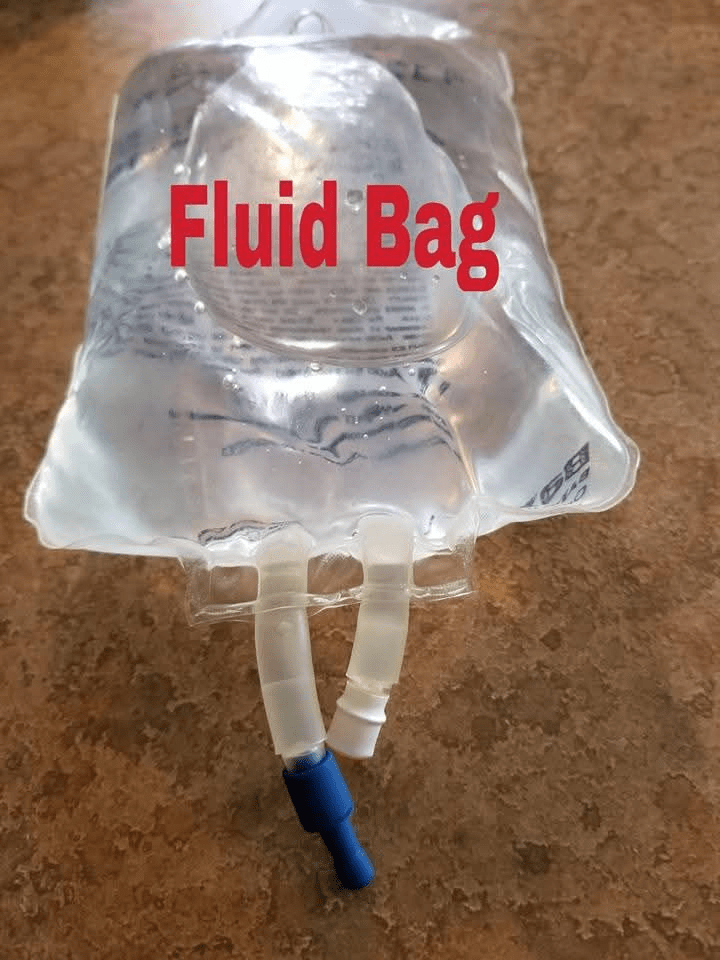 - 1) Expired Fluid bag…NOT TO BE USED SQ for covered heat source for body.