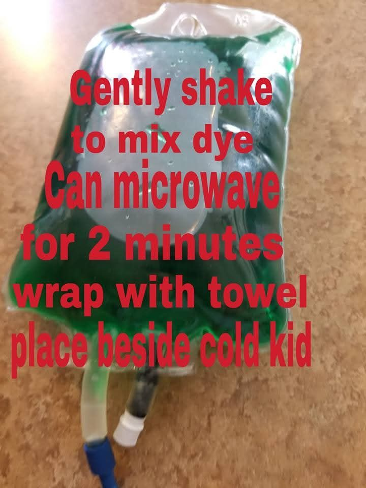How to make a reusable microwavable Kid warmer from expired fluid bag… speak to your local veterinarian about getting a bag.
