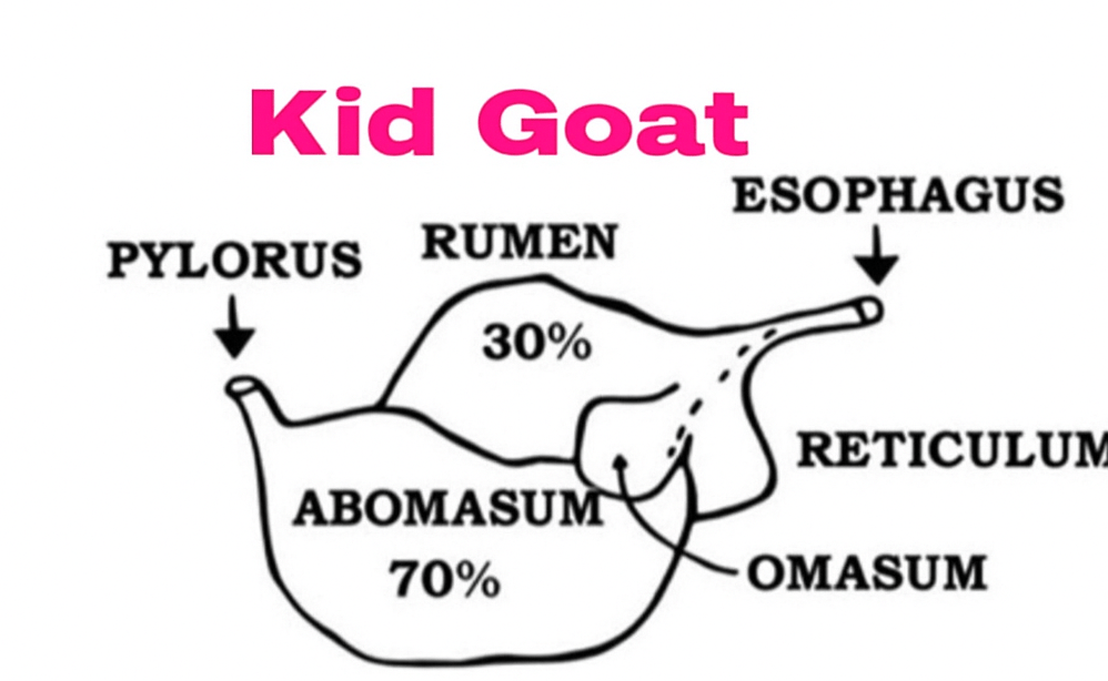 When the kid swallows milk, the milk goes directly to the abomasum from the mouth and esophagus by using the esophageal groove. Everytime the kid sucks and swallows, the groove forms at the entrance to the rumen and bypasses the rumen and sends the milk straight to the abomasum to be digested by stomach acid.